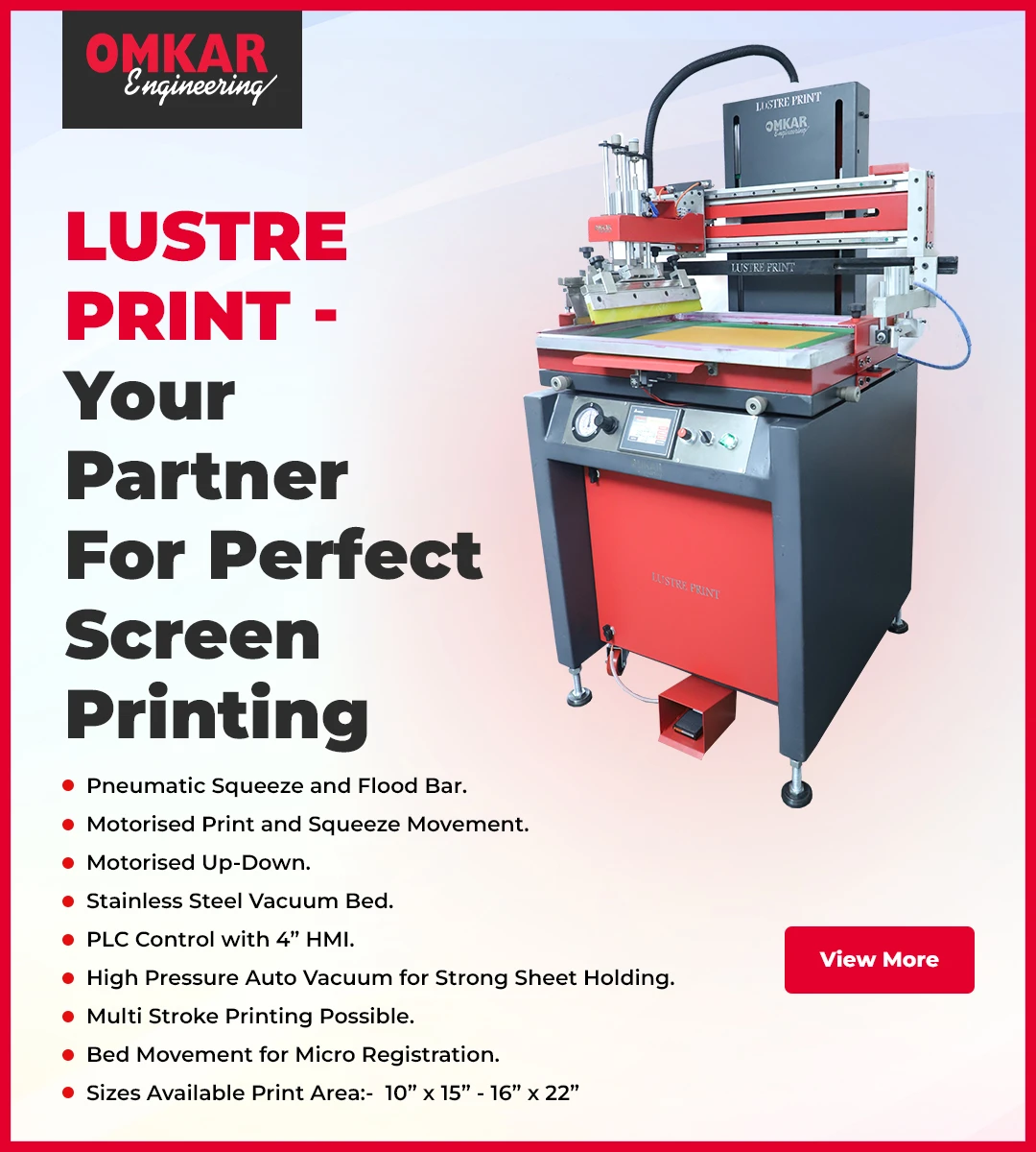 The Lustre Print Screen Printer is designed for precision, speed, and high-quality printing across a wide range of applications.